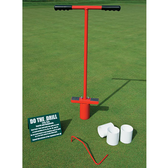 Komplett sett med 3 alu. hullkopper ( 8 x 9 cm ), hullbor, hullkoppopptager og skilt.